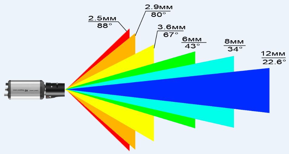 Угол обзора является одним из основных критериев при выборе камеры видеонаблюдения поскольку определяет контролируемую ею зону наблюдения. Зависит этот угол от фокусного расстояния объектива камеры и формата (размера) ее матрицы.