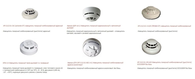 Виды адресных пожарных извещателей: тепловые, дымовые, ручные, комбинированные